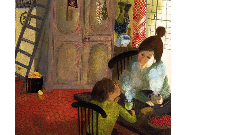 К тому времени, когда мальчик вернулся домой, все изменилось. Он улыбался в восхищении от мира, как его папа. Даже мама стала выглядеть иначе, не такой отстраненной и с совсем иным выражением лица: она больше не ругалась. «Я хотел рассказать (маме) о том, что я увидел, попробовал, почувствовал...» – говорит нам герой-рассказчик. Но как такое можно передать? На картинке мальчик с мамой внимательно и доверчиво смотрят друг на друга, вдыхая аромат горячего шоколада.