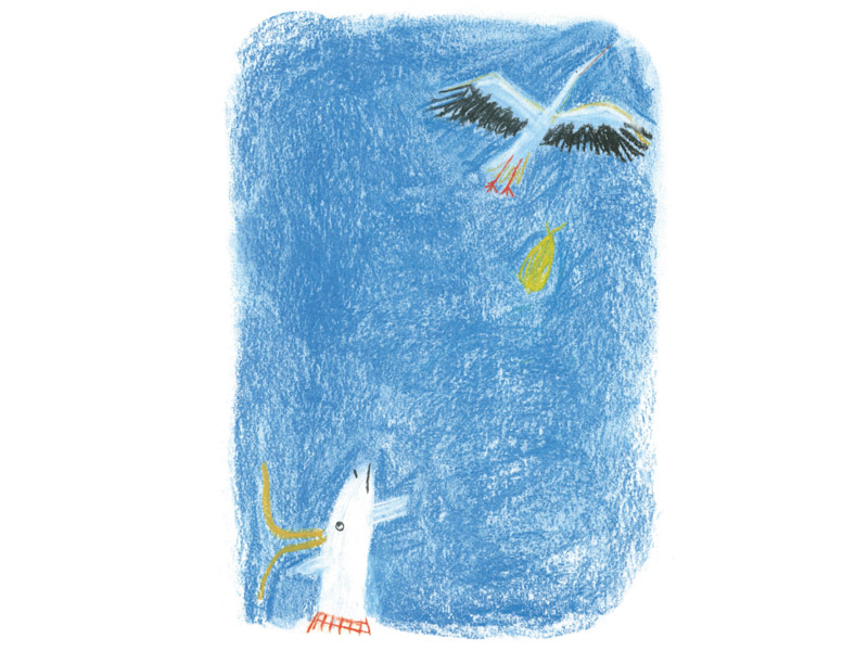 А дальше Мемеку буквально свалился на голову «ребенок»: аистиха Маржи несла в клюве сверток ‒ и выронила. «Неизвестный в носке» оказался зверьком соней, и ему грозила смертельная опасность от куниц (в книге они зловеще называются «когтярами»). Мемек в порыве прекраснодушия пообещал Маржи заботиться о «ребенке».