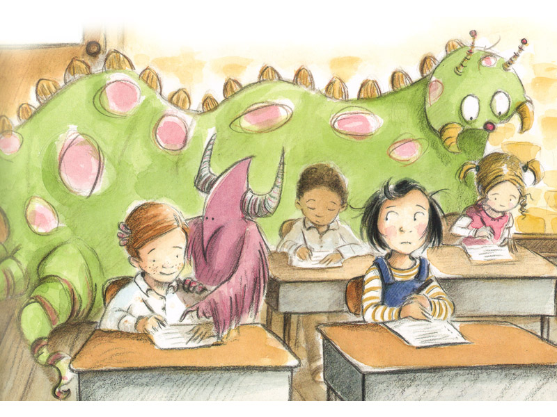 One has to “get” their monster, and once that happens, it’s your monster for good. When the monster will show up is generally unpredictable and is nearly always unexpected. Timmy’s monster first materializes during a history test, Franklin meets his at a library, Rebecca gets hers while riding a bike, and Lenny finds his when running from bullies. It might seem at first sight that monsters appear in very different situations, but that situation might have to do with looking deeper inside yourself or mustering up your courage. It’s a sort of personal revelation—you open your eyes one morning and there it is, your monster, right in front of you.