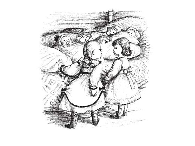 Иногда папа так устает, что у него нет сил ровно держать поводья своей лошади. Но при этом в семье помнят не только о насущном, но и о том, чтобы украшать и разнообразить повседневную жизнь. Часто папа играет по вечерам на скрипке, а мама делает такие красивые наряды для кукол Лоры и Мэри, каких нет больше ни у кого. Под Рождество вся семья готовит леденцы.