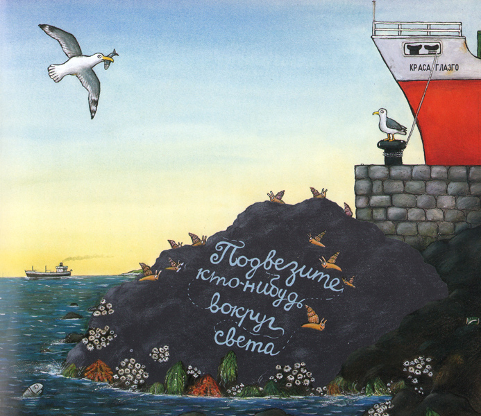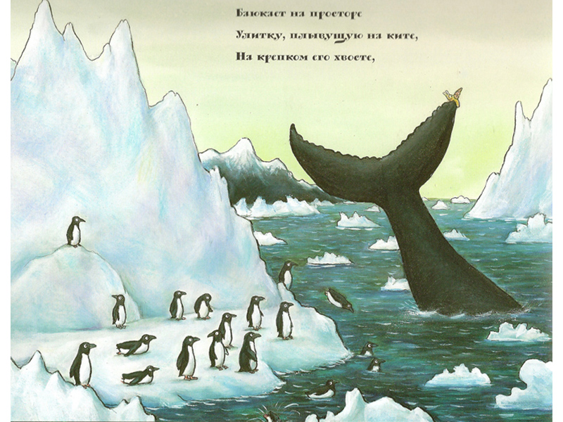 «Папмамбук» уже рассказывал о чудесной книжке Джулии Дональдсон «Улитка и кит», в которой маленькая улитка путешествует вокруг света на китовом хвосте, а затем выручает кита из беды, когда тот оказывается выброшенным на берег. В 2005 году «Улитка и кит» былапризнана ВВС лучшейиллюстрированной книгой длячтения вслух на английскомязыке.