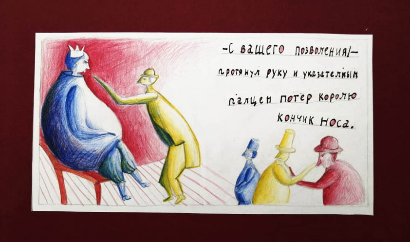 Михаил Панов, 13 лет, г. Королёв, обладатель дипломов «На пути к мастерству» и «За выразительность иллюстраций» представляет иллюстрацию к сказке Джанни Родари «Как потрогать короля за нос»