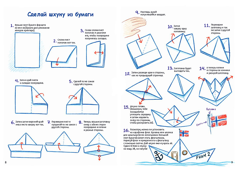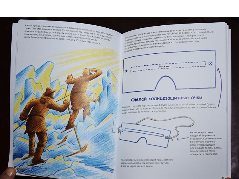 Нансену и Ялмару нужно было привязать к саням все оборудование особыми морскими узлами. Эти узлы можно попробовать сделать самим, используя инструкцию в книге. Еще одна инструкция помогает понять, какое снаряжение стоит брать с собой в поход с палаткой (не на Северный полюс).