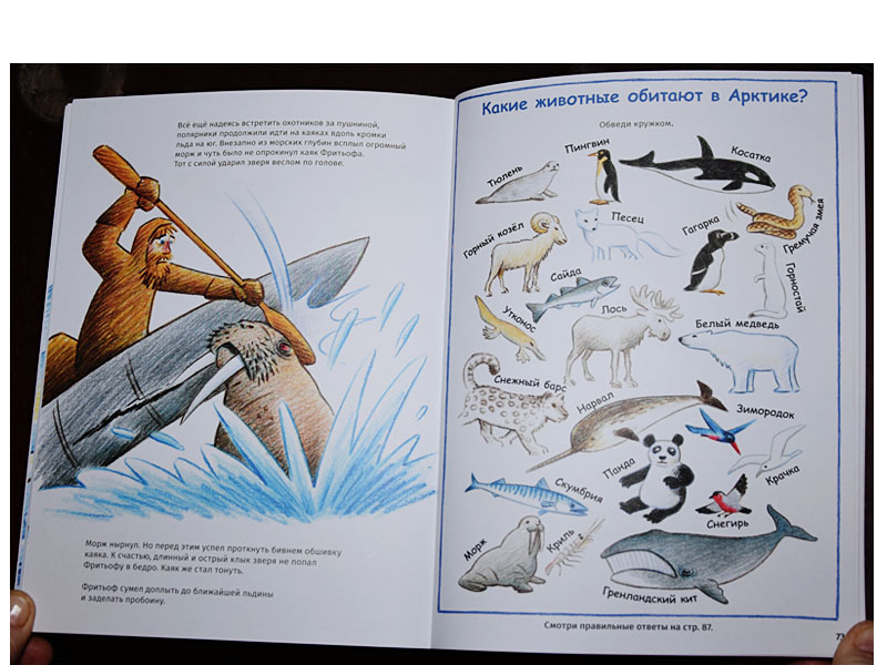 Моей дочери Ане всего 4,5 года, но я решила прочитать с ней познавательную книгу «Как стать героем-полярником. Учись у Нансена», потому что она любит походы, истории про путешествия и приключения и интересуется тем, каким разным может быть мир, а книга Бьёрна Оусланда написана увлекательно и щедро проиллюстрирована. Кроме того, по ходу повествования читателю даются задания по подготовке своей экспедиции. Задания даны уместно, они небанальны и могут подойти для дошкольника. При чтении с дошкольником можно избегать излишне сложных слов, заменяя их более простыми и уже знакомыми. Например, вместо слова «шхуна» использовать «корабль», а вместо «торосы» – «острые льдины». А сложные задания на знание терминов и географии можно отложить на более старший возраст.