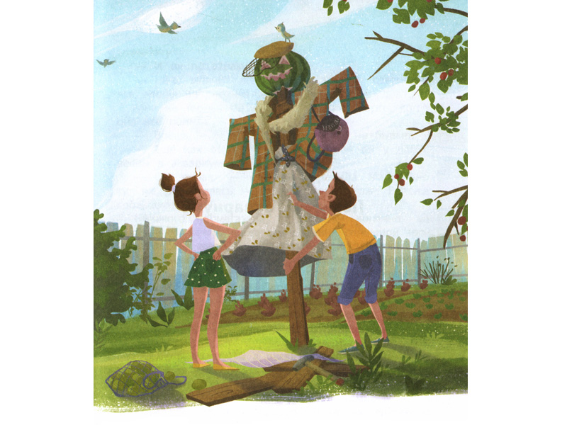 Мы потом много говорили о хулиганстве, на протяжении всего чтения. Потому что девочка-то как раз оказалась такая выдумщица, что одними курами никак не могла ограничиться! В итоге ребята угоняли лодку, проламывали крышу сарая, катались на дрезине, забирались на свалку и устанавливали посреди двора пугало…
