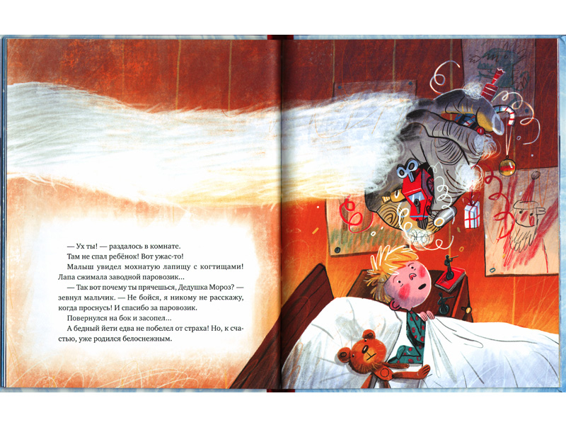 Бедному Йети приходится пешком доставлять подарки в город. Но Йети такой большой и страшный (хоть и «немножко похож на Деда Мороза») ‒ не будут ли от него все разбегаться в ужасе?..