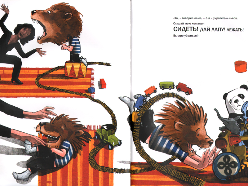 После того как закрыта последняя страница, мы еще раз, уже отложив книжку, проигрываем весь сюжет: девочки – за мам, мальчики – за Леона. Вот только получается скорее по принципу «семи нянек» – сыновей гораздо меньше, чем желающих их повоспитывать. Ну и что? Зато весело!