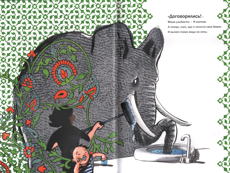 Но Леон уже стал слоном. Вместе с детьми пробуем изобразить хобот по картинке. Хм, похоже, книжный герой долго тренировался; по крайней мере, многим сложно повторить этот жест (вытянуть одну руку, обхватив ее снизу другой, и поймать ею собственный нос).