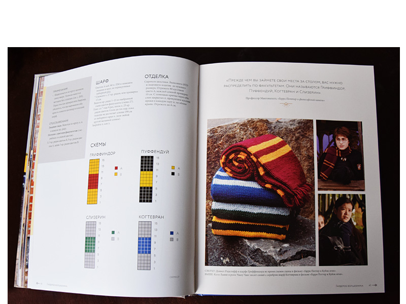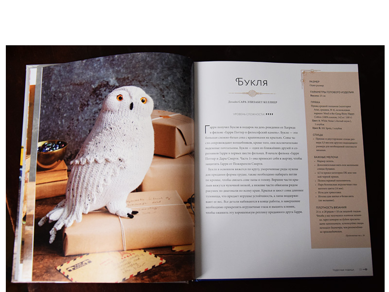 Я держу в руках свою первую книгу по вязанию, которое стало моим новым хобби. Но в то же время это книга о мире Гарри Поттера. Она как напоминание о нем, как способ сделать этот волшебный мир ближе. Раз уж так вышло, что мне не пришло письмо из Хогвартса в мои 11 лет (видимо потому, что я не догадалась к этому возрасту достаточно хорошо выучить английский), то я могу хотя бы создать атмосферу Поттерианы вокруг себя. В моей библиотеке уже несколько книг, написанных на основании истории о Гарри Поттере. Все они как теплый привет, как открытка к празднику от дорогого друга. Ведь книга о мальчике, который выжил, стала мне настоящим другом. И подарила друзей, началом дружбы с которыми был наш общий интерес к этой истории.