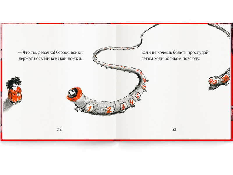 В этой книжке всё в движении, всё живое, подвижное – собачка, чудовище, старинный стол на одной ноге, сороконожка. У каждого героя – малюсенькая роль и некоторое количество ног, но каждый обуреваем эмоциями: обида на несправедливые обвинения, расстройство из-за нарушения привычного порядка жизни, клятвенные заверения в собственной невиновности… Так в чем же преступление? Пропали любимые тапки, надо срочно, пока не проснулись родители, найти преступника. Преступником может оказаться любой. Ясно же, если есть ноги, могут понадобиться и тапки. Детективная история – но только для самых маленьких. И в роли детектива – сама потерпевшая, Саша. А чтобы маленький читатель не испугался и не заблудился, к книжке приложена карта Сашиного путешествия по волшебной стране пропавших тапок.