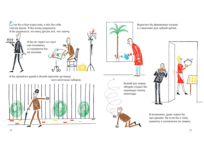 Каждая книга Евы Яниковски – монолог. Рассказчик – человек шести-восьми лет – берется рассуждать на какую-нибудь серьезную тему. И темы серьезные, и рассуждения – тоже. Причем они настолько узнаваемые – в том числе, в своей простодушной искренности и уязвимой логике, – что текст нельзя читать без улыбки. И у читателя-ребенка возникает чувство, что он смотрит на себя в зеркало, но не простое, а с увеличительным эффектом – как в павильоне смеха.