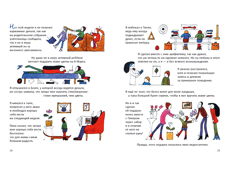 Однако в увеличивающем зеркале книги отражается не только ребенок. Там еще можно и взрослых как следует рассматривать – тех, кто находится рядом с детьми. Эти взрослые вечно что-то хотят от детей, вечно навязывают им свои правила жизни… Но… Если бы все было так просто! Родители ведь отвечают за детей и, между прочим, любят их. А дети порой так досаждают родителям…