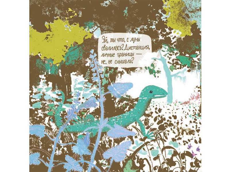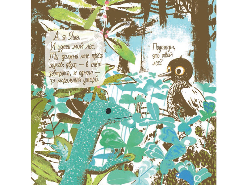 Кира, птенец дрозда-рябинника, в отсутствие родителей отвлекается на бабочку и… выпрыгивает из гнезда. Оказавшись на земле, она встречается с ящерицей Яшей, которая предлагает Кире отправиться вместе с ней на экскурсию по лесу. Конечно же, птенец соглашается. По пути они встречают столько новых растений и обитателей леса… Благодаря иллюстрациям Олеси Гонсеровской, я словно тоже побывала в лесу вместе с ящерицей и Кирой.