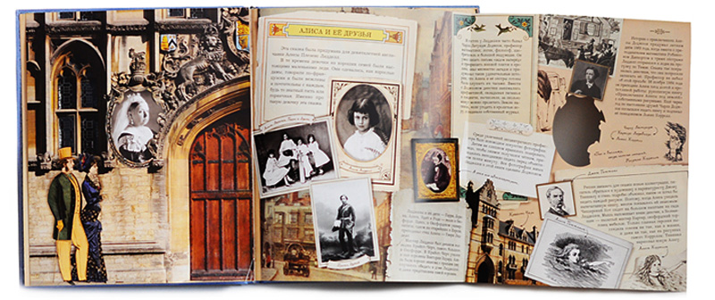 Чтобы зайти в какой-нибудь дом, нужно открыть дверь. Так и в этой книге, чтобы оказаться в сказке, вы должны открыть на первой странице большую деревянную дверь старинного здания Оксфордского университета, через которую вы и попадете в Англию викторианской эпохи и сможете прочесть о королеве Виктории и о традициях того времени. А также об Алисе Плезенс Лидделл, для которой и была написана эта сказка профессором математики Чарльзом Латуидж Доджсоном, впоследствии издавшем эту книгу под псевдонимом Льюис Кэрролл.