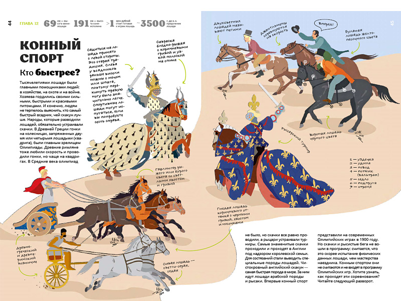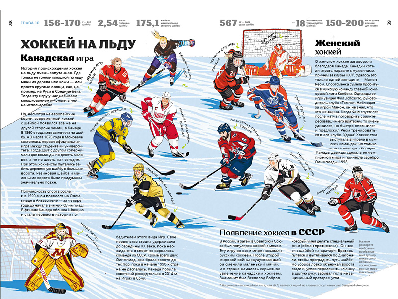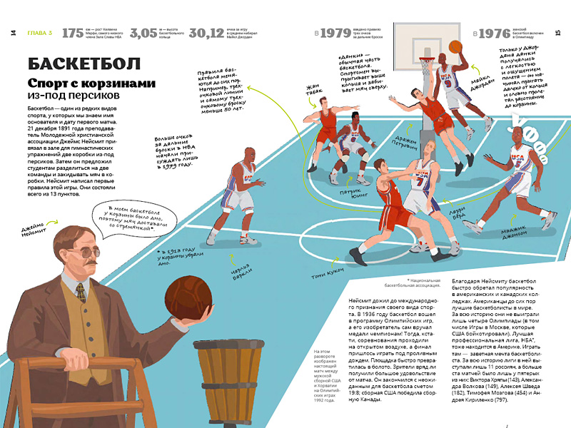 Книга содержит множество интересных исторических фактов. Например, корзина для баскетбольного мяча раньше была закрытой, и спортсмены каждый раз после попадания мяча в корзину использовали стремянку, чтобы вытащить оттуда мяч. Меня также заинтересовало описание и история спортивной формы в разных видах спорта.