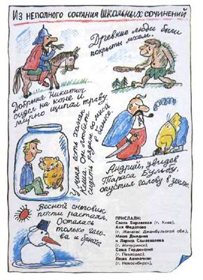 Между прочим, все началось в так называемые «застойные», времена, когда далеко не все можно было опубликовать. Но маленькие школьники – люди без комплексов и запретных тем, они присылали все, что казалось им смешным. Давайте вспомним: