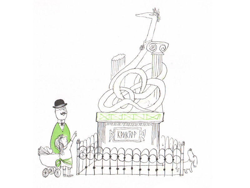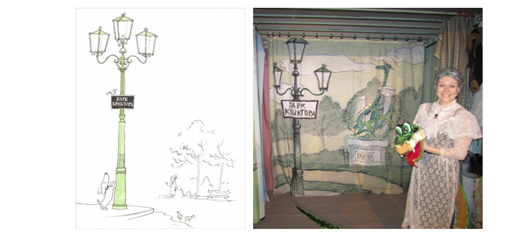 – Я искал материал для нашего театра. У нас есть спектакль для малышей «Муха-цокотуха», созданный нашими друзьями из «Творческого Объединения 9». Идет он с большим успехом. Но хотелось чего-то еще – нового, неожиданного. Я с детской литературой для дошколят не очень хорошо был знаком. Пришел в книжный магазин, провел там четыре часа и наткнулся на «Криктора». Я с ним просто завис! Все интересно и очень колоритно: тут тебе и удав, и Франция, деревушка в Провансе, и мадам Бодо такая выразительная… Автор Томи Унгерер уже все за нас придумал – бери и ставь. Потом я прочитал, что Томи Унгерер специально выбирает для своих книг таких персонажей, которые обычно вызывают у детей страх, и сочиняет про них смешные истории. В них присутствует элемент драматизма, но в целом получается очень смешно. Персонажи, за которыми традиционно закреплены негативные роли (удав, осьминог), у Унгерера выступают в роли всеобщих любимцев и спасителей.