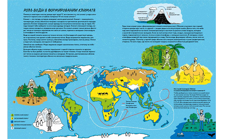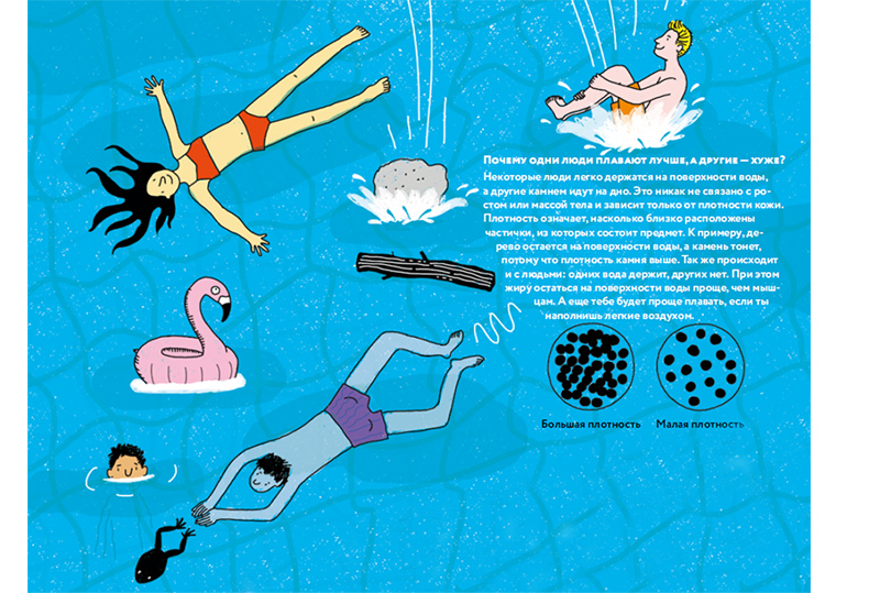 На самом деле перед нами полноценная и очень интересная (даже для взрослых) энциклопедия, которая представляет тему воды порой с самых неожиданных ракурсов. Например, отвечает на вопрос, почему одни люди плавают лучше, а другие хуже; или рассказывает, как появилась классификация климатов на нашей планете или наглядно показывает древнее водоподъемное колесо.