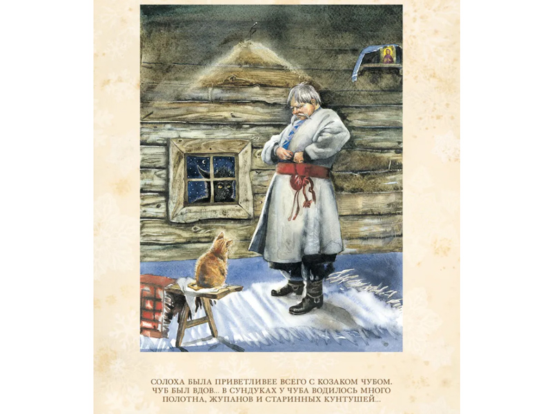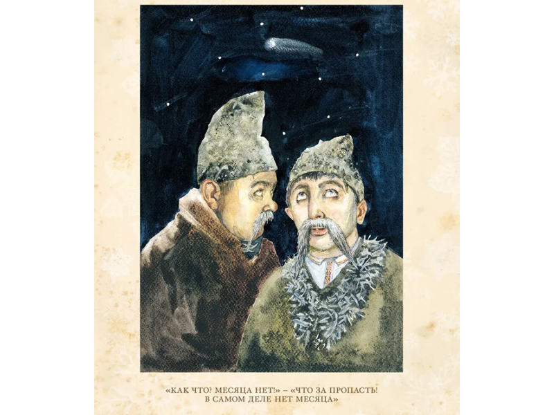 Оформление книги (Издательский дом Мещерякова) привело меня в полный восторг! Иллюстрации очень точно передают атмосферу «Ночи перед Рождеством». Насыщенные, «вкусные» краски, оформление под старину, жёлтая мелованная бумага и тканевый корешок.