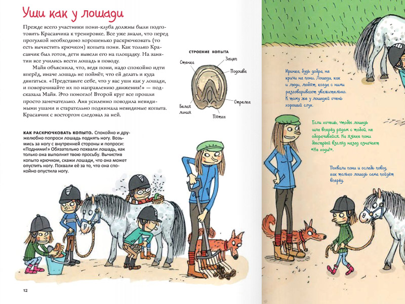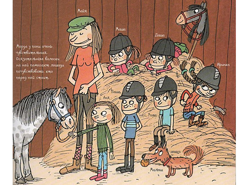 Можно смело назвать эту книгу не только пособием по верховой езде, но и мини-учебником доброжелательных отношений между детьми, взрослыми и животными.