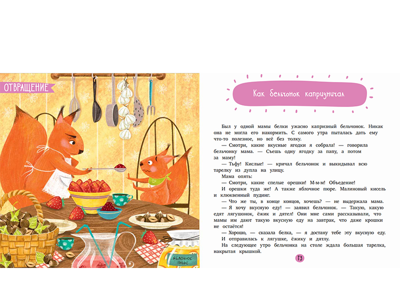 Я очень люблю сборники коротких сказок. Такие книги хорошо встраиваются в бешеный ритм детской жизни, когда читать и слушать хочется, а замедлиться и услышать – сложно. «Компас эмоций» – рука помощи родителям лягушат, у которых прорисовалось свое «я» и иногда оно такое большое, что всем другим в доме тесно. Сказки о бельчонке, которому мама всегда подавала на завтрак «не то», о зайце, который хотел жить в семье друга, о волчонке, который не хотел играть дружно, – все это зарисовки нашей жизни. И когда все аргументы в споре с трехлетним исчерпаны, очень помогает напомнить о том, что в сказке кто-то уже вел себя похожим образом, и это была неудачная идея.