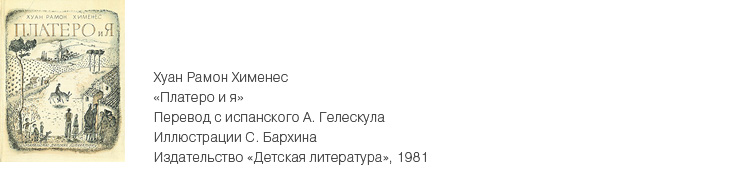 Первая из них – повесть нобелевского лауреата Хуана Рамона Хименеса «Платеро и я» (1914), рассказывающая о жизни ослика Платеро. Вместе со своим хозяином ослик бродит по горам Андалусии. Больше семидесяти коротеньких зарисовок посвящены наблюдениям за самыми разными – трагическими и радостными – сторонами провинциальной испанской жизни. «Когда в сумерках я и Платеро, оба продрогшие, въезжаем в лиловую тьму жалкой улицы, сползшей к сухому руслу, бедняцкие дети тешатся страхом, играя в нищих. Один набросил мешок на голову, другой гнусавит, что слеп, третий прикинулся колченогим...» Это очень честная, нежная и грустная книга. В Испании ее часто издают в сокращении, выбирая только самые оптимистичные рассказы, ведь в конце книги ослик умирает… Кстати, если в каком-нибудь испанском городе вы заметите скульптурное изображение ослика, это наверняка будет Платеро.