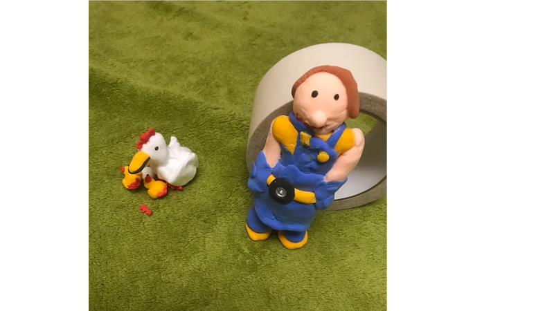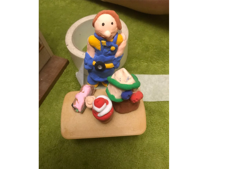 Сначала появился рабочий, который строит дорогу. (В истории Д. Биссета рабочих несколько, Аня же слепила только одного.)