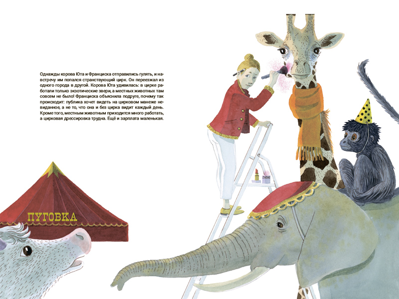 И что вы думаете? Вскоре к удивительным коровам пожаловал сам бык Удо и странствующий цирк. А корова Юта вместе с подругой Франциской иногда по-прежнему поют на лугу вдалеке от суеты.