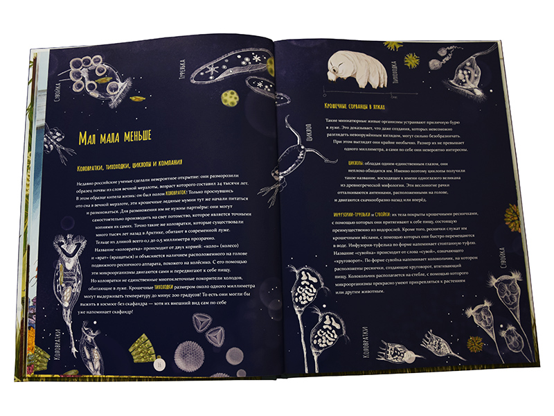 На самом деле «Лужа» оказалась очень даже непростой. Настоящий микромир со своим довольно сложным устройством. Даже такой небольшой водоем становится местом обитания множества живых существ. Удивительно, но в лужах живут ровесники динозавров! Там же можно встретить таких необычных существ как коловратки, циклопы и тихоходки. Они обладают необычным для живых организмов свойством: могут замерзать и потом оживать, а тихоходки выживают даже при невероятном космическом холоде в минус 200 градусов.