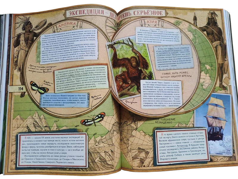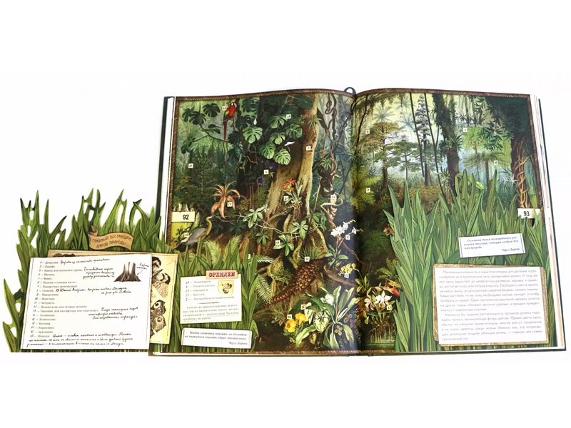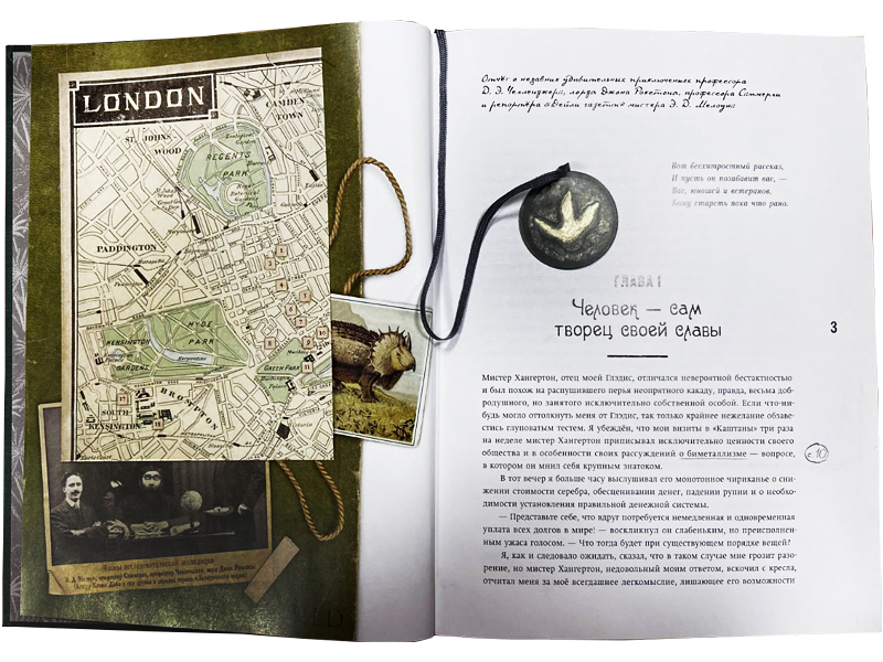 Как и положено путешествию в дикие, неизведанные места, кишащие опасностями, оно полно разными событиями, от предательства и ранений до удивительных открытий, сокровищ и боевых походов. Особенно интересно путешествовать в затерянный мир вместе с интерактивной книгой издательства «Лабиринт Пресс». Ведь каждый путешественник знает, что успех путешествия зависит в том числе от экипировки и вашего гида или проводника. А в этом случае проводником становится сама книга. Во-первых, в ней, как и в других интерактивных книгах из этой серии, есть объяснение многих непонятных вещей. На полях рядом с текстом идут ссылки на страницы с вкладками, где можно прочитать информацию или объяснение непонятного места в тексте. Так читать гораздо удобнее и интереснее. А сами вкладки, вклейки, клапаны и информационные странички оставляют ощущение, что ты побывал в виртуальном музее.