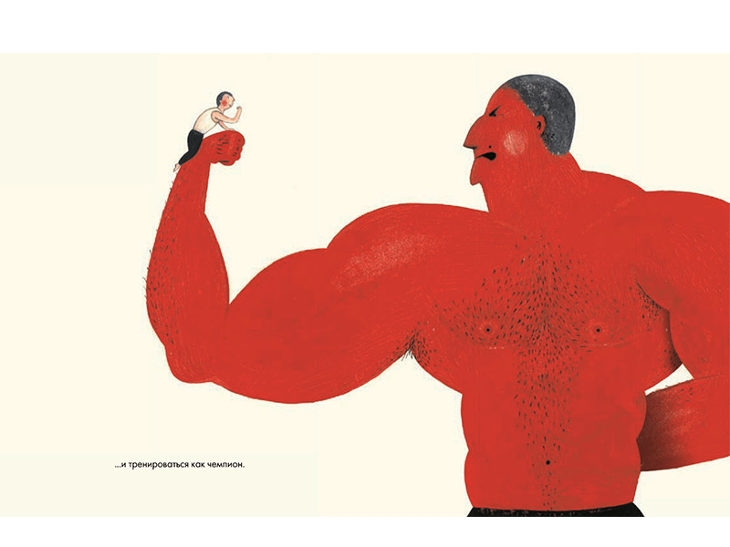 «Чемпион» – совсем небольшая книжка, с минимумом текста. Идеи и смыслы переданы не словами, которые здесь играют, скорее, вспомогательную роль, а иллюстрациями Резы Дальванда. Но коротенькие и очень эмоционально окрашенные предложения вполне доступны для самостоятельного чтения ребенку шести лет. А еще лучше прочитать ее вместе – и при этом не торопиться переворачивать страницы. Может получиться неожиданное путешествие во внутренний мир человека и даже разговор о счастье и о любви. Не трудновато ли для шестилетки? Совсем нет.