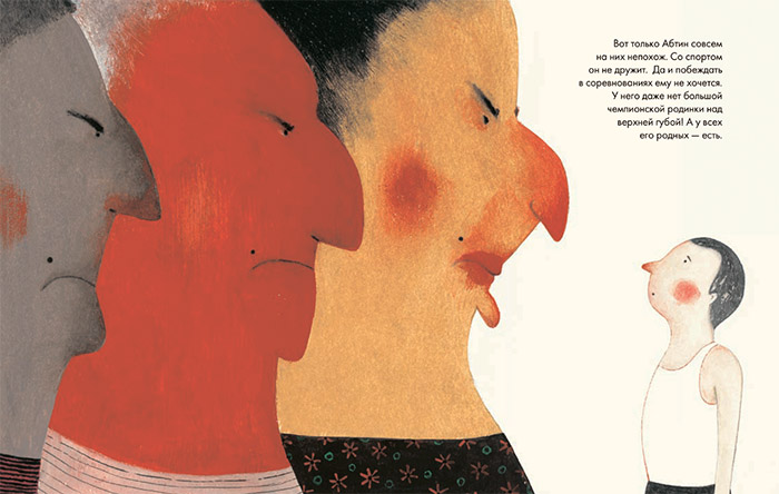 В семье у маленького Абтина все – чемпионы. С первого же книжного разворота на читателя буквально обрушивается поток чемпионских фотографий и медалей его родных. Но почему у всех этих чемпионов такие невеселые лица? Ведь обычно успех, победы, медали радуют их обладателя. Да и у самого Абтина грустный маленький рот, почти точка. И на фоне этого свидетельства грандиозного семейного успеха мальчик выглядит удивительно несчастным, как бы оглохшим от рукоплесканий. Что происходит в этой странной семье?..