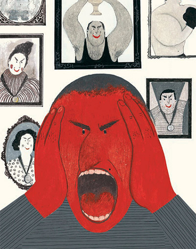 Художник Реза Дальванд несколькими цветовыми пятнами и выразительными линиями показывает , как легко подавляется детская душа непомерными планами и требованиями взрослых. Огромные красные лица возмущенных родственников (на портретах они увешены медалями) нависают над крохотной фигуркой ребенка. Отличный образ наполеоновских планов взрослых, которые не дают малышу развиваться в своем темпе, в своем направлении.