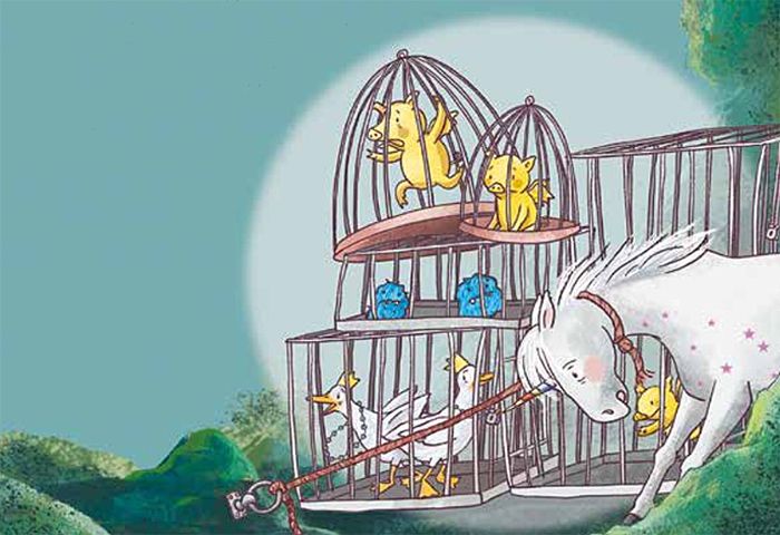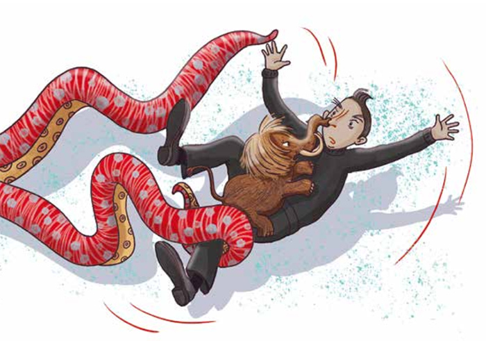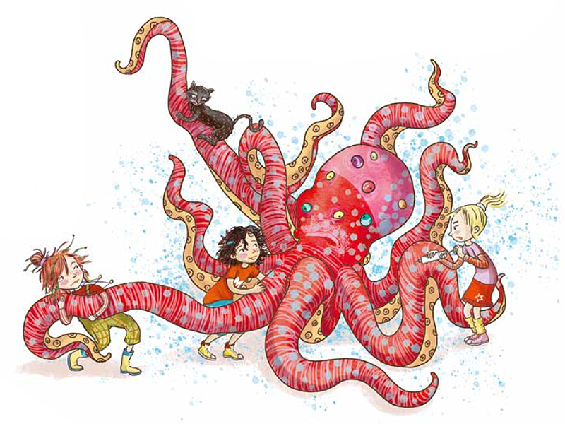 Сереже, переносящему книжные сюжеты и события в реальность, читать о животных – лишний соблазн, потому что кошечки и собачки, кролики и попугаи потом долго обсуждаются вместе с обещаниями и клятвами ухаживать за ними. А в истории Александры Фабиш «Милла и мини-мамонтенок. Путешествие со звездным вихрем» есть чудесный Мамонтенок и Осьминог-оракул, говорящий Кот и Уточки с коронами и жемчужными ожерельями и даже золотые поросята. От таких милых друзей, особенно Мамонтенка размером с мягкую игрушку, я бы тоже не отказалась.