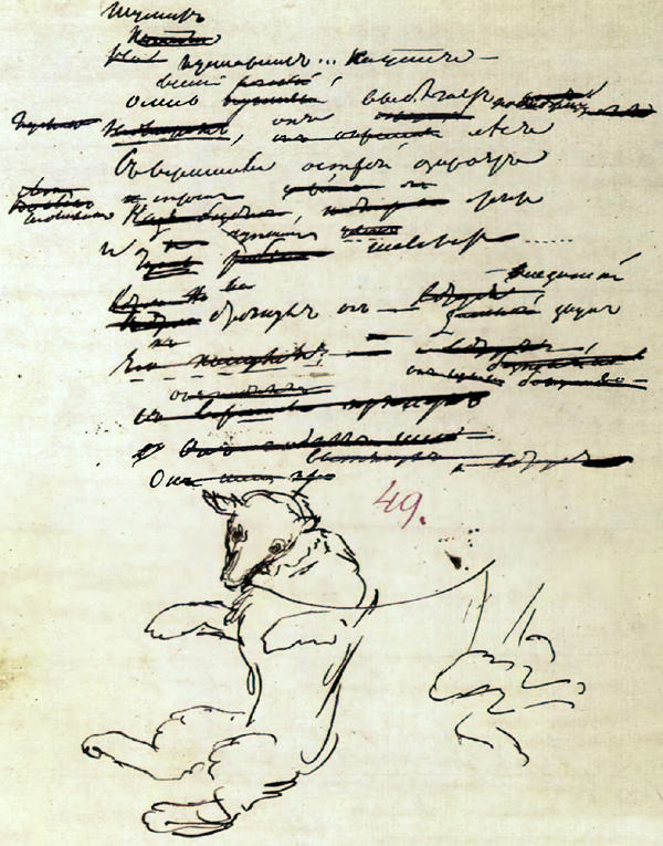 Кого, как вам кажется, изобразил на этом рисунке Пушкин? Долгое время считалось, что это медведь. Валентин Берестов высказал предположение, что это волчонок. С волчатами как раз и были связаны неприятные переживания Саши Пушкина.