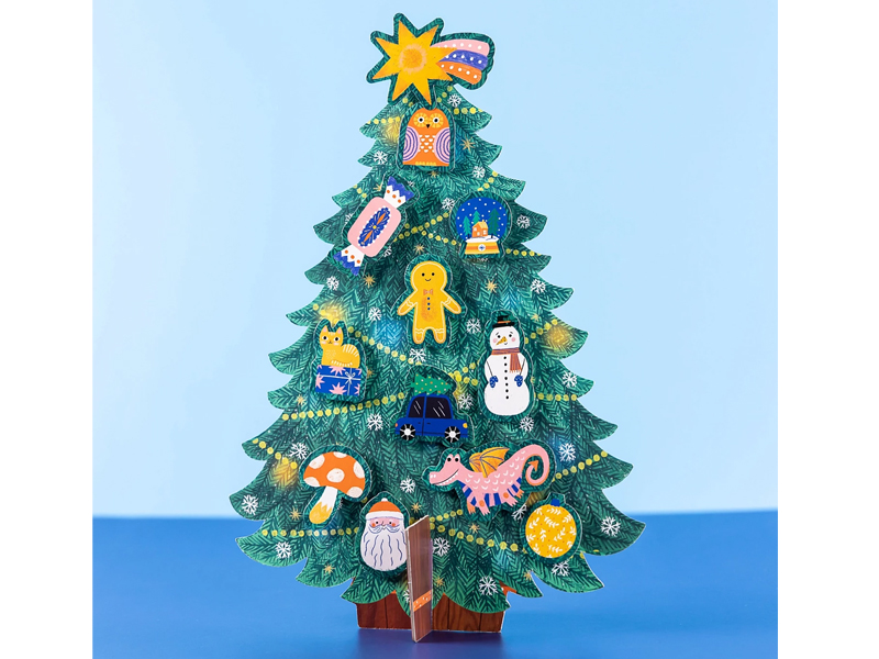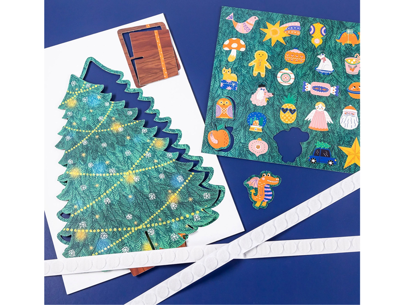 В канун Нового года все ждут чудес и волшебства. Готовят угощение, украшают дома и, конечно же, наряжают елки! Кто-то покупает живую елку, а кто-то искусственную. В последнее время по поводу выбора елки много дискуссий. А у меня дома теперь экологичная картонная елочка. Никому не будет жалко, что ее срубили, и после нее не надо убирать осыпавшиеся иголки. Она не пахнет пластиком. Будет долго храниться, и наряжаться еще не на один Новый год. И всё для нее есть в комплекте «Наряжаем елку. Новогодняя игра для малышей» издательства «Альпина Паблишер»: 1 картонная елка и 31 игрушка на липучках.