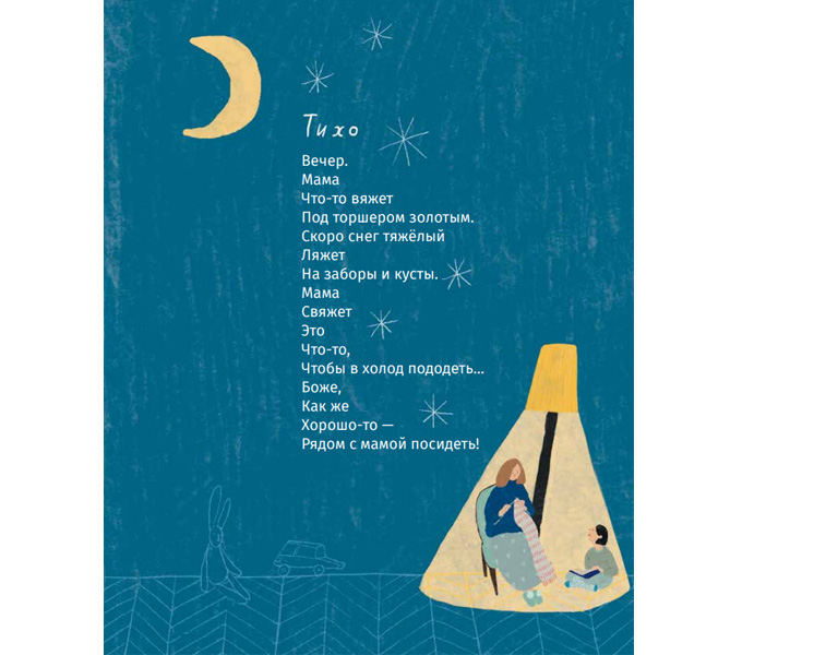 Впрочем, зима – это ведь не только треск новогодних фейерверков и ожидание подарков. В книге Маши Рупасовой есть место и тихой лирике зимнего вечера у лампы, когда мама что-то вяжет, а ребенок приткнулся рядом, – детское зимнее счастье выглядит и так тоже. Но ребенок-дошкольник не может и не хочет долго сидеть в тишине. Ему надо прыгать, ловить ртом снежинки, валяться в сугробах. Повезло тому, у кого мама все правильно понимает, как случается в стихотворении «Зимний режим»: