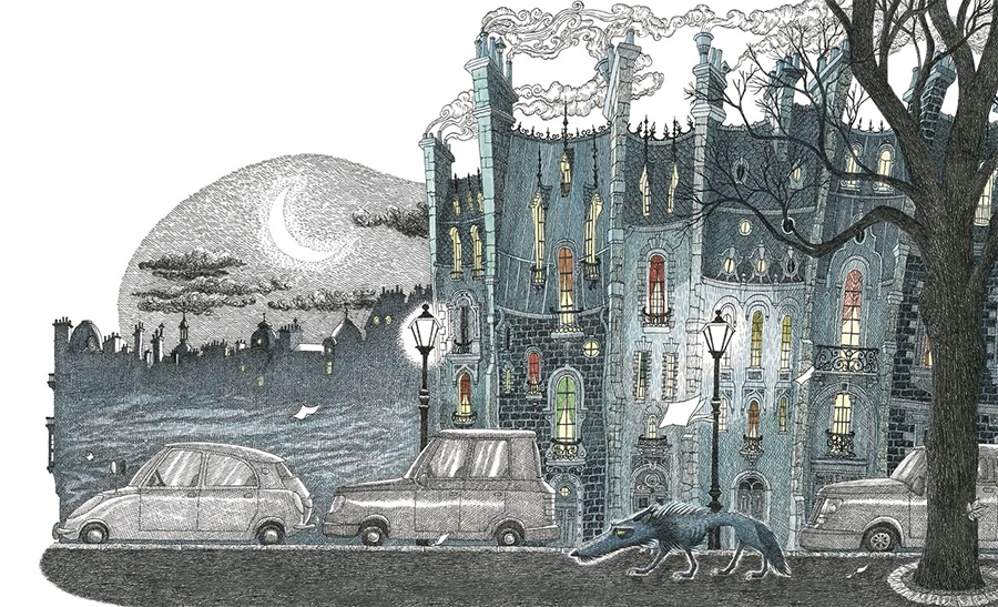 На одном из рисунков Медор находится в обществе культурных дам, и они все, сидя на диване, пьют из чашечек чай с пирожными… Разве волки так могут? Они же страшные лесные хищники! Но, мне кажется, именно поэтому книга так и называется: «Двойная жизнь Медора». С самого начала я, как читатель, не знала, что этот «несчастный тощий пёс» – волк, и только через несколько страниц автор, будто бы по секрету, рассказывает, что на самом деле это волк, только не злой, а добрый.
