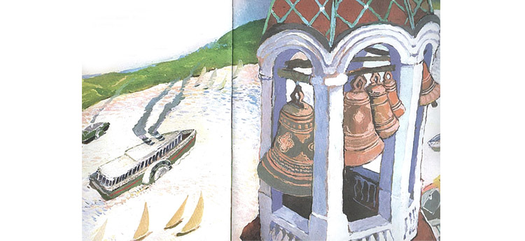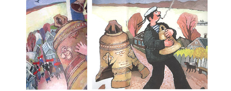 Семья – базовое пространство существования ребенка-дошкольника. И поэтому маленькому читателю легко соотнести себя, свой опыт, свои чувства и переживания с колокольной семьей. И особенно с главным героем книги, «мечтательным ребенком», колоколом Бим-Бимом. Со своей колокольни он наблюдает за волжскими пароходами, на носу которых висят сверкающие колокола – корабельные рынды. Бим-Бим мечтает стать рындой, отправиться в плаванье по разным странам и повидать жизнь. Папины убеждения в почетном и интересном служении церковных колоколов наскучили Бим-Биму… Ему так хочется оставить свою колокольню!