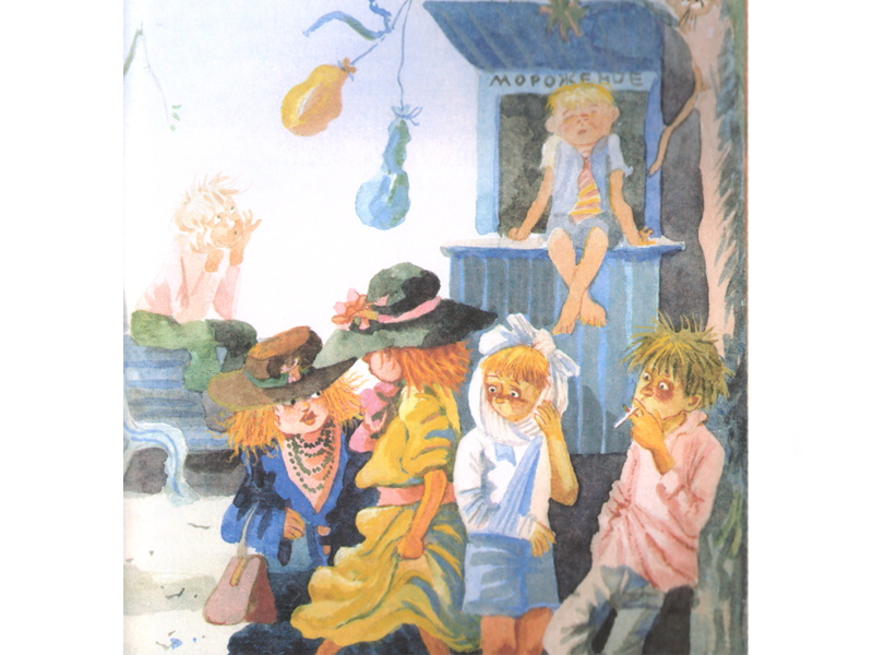 Пробуем читать. Дети решают, что книжка с таким задорным названием должна быть веселой, и, не дожидаясь развития событий, начинают увлеченно веселиться сами вслед за героями. Читать становится все труднее, но мне как-то неловко призывать слушателей к порядку – в конце концов, здесь же не школьная обязаловка... Но становится все хуже. Дети имитируют перекидывание шариками мороженого, плавно переходят к перестрелке из воображаемых пистолетов с последующими шумными падениями со стульев... Настоящий праздник непослушания разворачивается прямо у меня перед глазами.