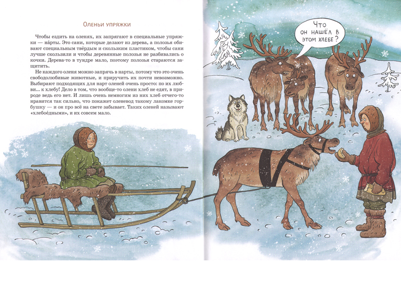 Но, думаю, шестилеткам и даже пятилеткам книгу об оленях тоже можно прочитать. Ведь они уже знакомы с северным оленем по «Снежной королеве» Андерсена. Правда, «тот», сказочный, олень сильно отличается от оленя реального. Но так ведь это хорошее упражнение для сопоставления образов.