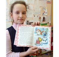 Я взяла эту книжку в классе, у нас много книг лежит, и мне она очень понравилась. Я люблю очень, где бабки-ежки и всё такое. Сказки всякие люблю.