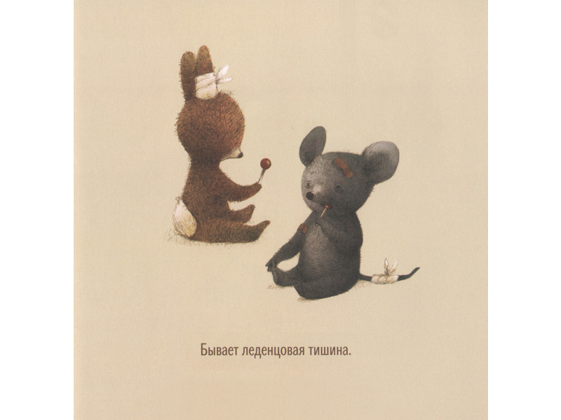 Оказывается, можно тихо делать зарядку, раскрашивать картинки, играть в прятки, бросать в воду камушки или слушать, как падает снег. Тишина может быть торжественная, если в праздничном колпаке загадывать желание в свой день рождения; грустная, если в детском саду до позднего вечера ждать родителей; «леденцовая», если смаковать конфетку на палочке как будто она последняя в жизни; или «парикмахерская», если, зажмурившись, пережидать, когда закончится стрижка.