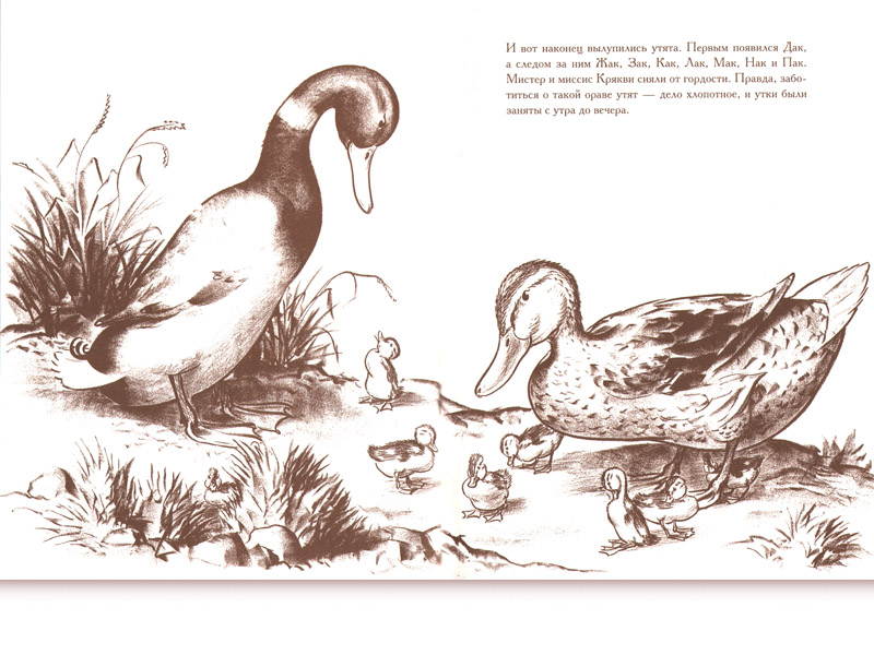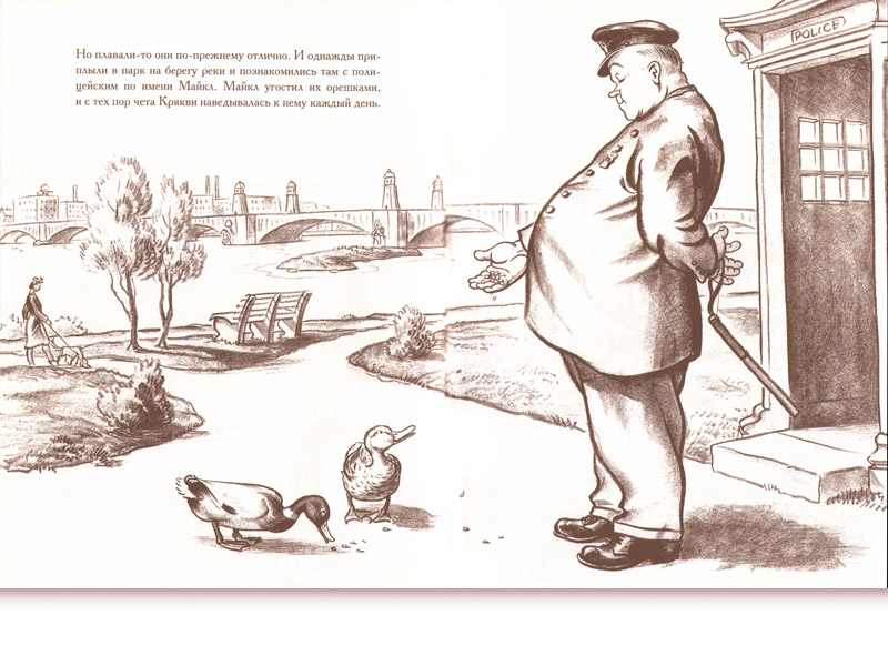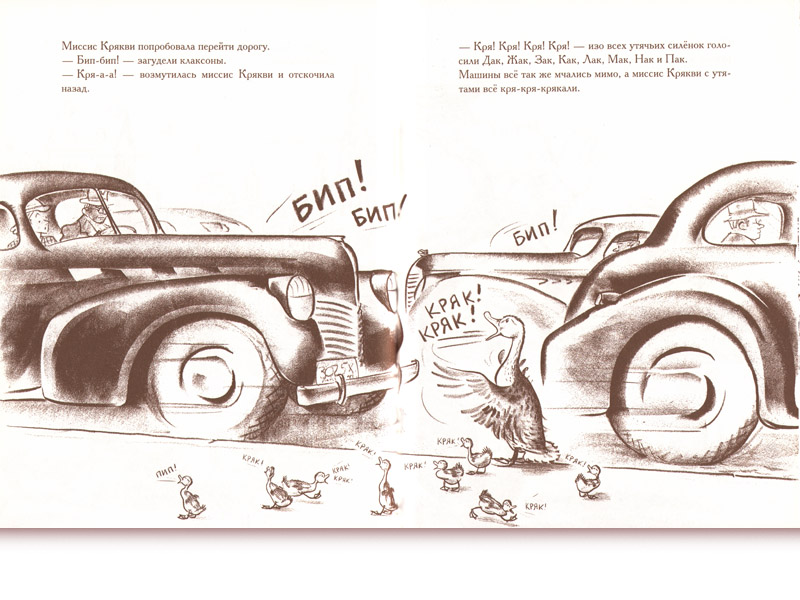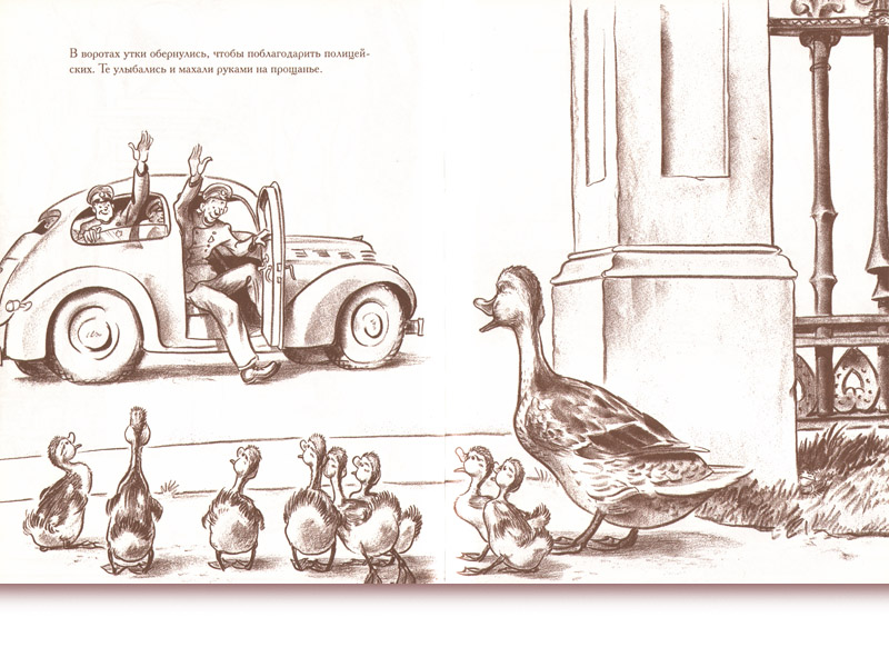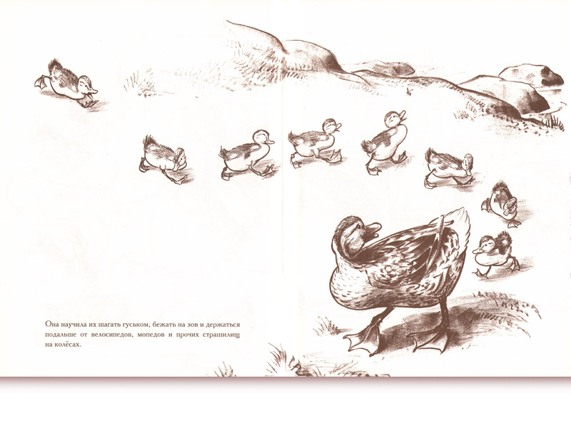 На эти размышления меня навела опубликованная в издательстве «Розовый жираф» знаменитая книга американца Роберта Макклоски «Дорогу утятам!» (перевод Ирины Азаровой). И в английском, и в русском изданиях – замечательные авторские картинки, за которые автор-художник получил медаль Калдекотта, почетную награду Ассоциации американских библиотек.