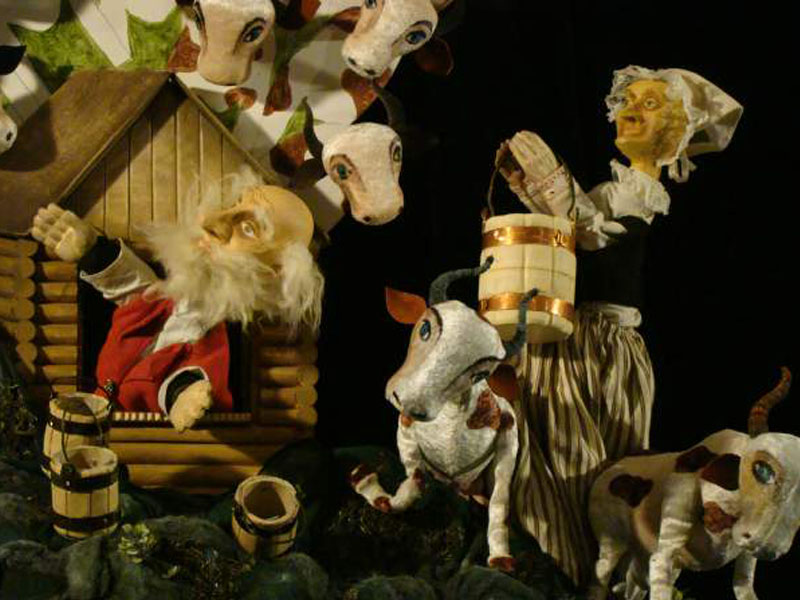 – Да, наверное так. У нас есть спектакль «Подарок морского царя» по двум сказкам – «О рыбаке и рыбке» А.С. Пушкина и «Подарок морского хозяина» финского писателя Сакариуса Топелиуса. Обе сказки очень похожи; мы знаем, что Арина Родионовна была финно-угорского происхождения и, возможно, она рассказала Пушкину финскую народную сказку. То есть корни у сказок одни, только в пушкинской сказке старуха все время что-то просит, а сама ничего не делает, в то время как в финской старуха много работает, доит одну корову, а ей хочется две, чтоб молока было больше… Мы в этом спектакле как бы «столкнули» два текста. Это был очень интересный эксперимент, огромное поле выбора для маленького ребенка.