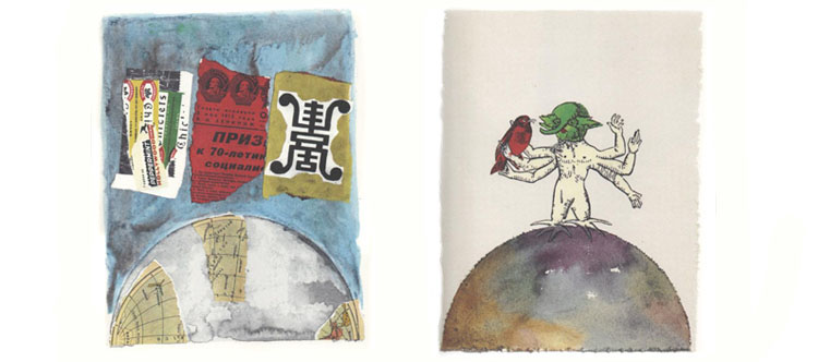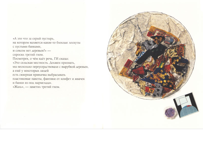 «Гномы Гну», последняя из трех сказок, также посвящена экологии человеческого духа и неотделимой от нее экологии Земли. И именно эта сказка «открыла» для Лёни необычные и прекрасные иллюстрации Эудженио Карми. Я решила не читать сразу текст – мне казалось, что двух предыдущих сказок вполне достаточно и Лёне требуется время, чтобы «переварить» и осмыслить уже услышанные истории. Но он не хотел убирать книжку и требовал читать дальше. Тогда я предложила ему сначала посмотреть картинки и придумать, о чем может быть эта книга.