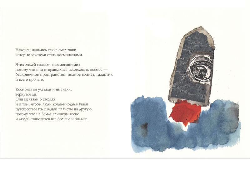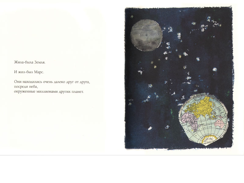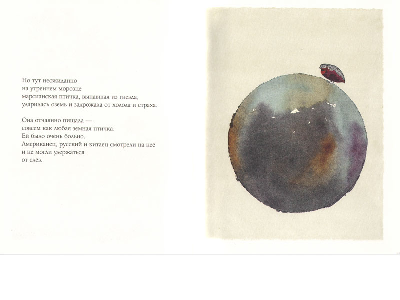 Когда я закончила читать эту сказку, Лёня попросил меня остановиться. Он взял лист бумаги и нарисовал ту самую марсианскую птичку, которая выпала из гнезда, ударилась оземь и отчаянно запищала от боли, холода и страха. На Лёнином рисунки птичка лежала вверх лапками и рядом было написано «пипипи». После этого Лёня сказал: «Не смотрите на меня», и полчаса я играла с младшим ребенком, а Лёню не слышала и не видела. А когда он снова «появился», то птички на его рисунке было почти не видно. Он укрыл ее одеялом из разноцветных бумажных лоскутков, а рядом сделал ракету-дом. «Теперь птичка не пищит. Ей тепло и уютно. Когда она проснется, то космонавты возьмут ее с собой на ракету и улетят на Землю. А тут мы их встретим и возьмем птичку к себе».