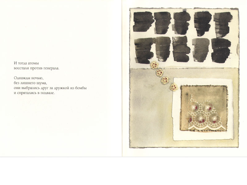 «Жил да был один атом». Первую страницу, где напечатана эта единственная фраза, Лёня без труда прочитал сам. И чуть не подпрыгнул от радости: «Мама! Я и не знал, что бывают сказки про атомы!» Я, признаться, тоже этого не знала. И с учетом того, что первая из трех сказок называется «Бомба и генерал», предположила, что сказка будет про атомную бомбу… Я напряглась, но само имя Умберто Эко – как бы «гарантия гуманизма». И мы продолжили чтение.