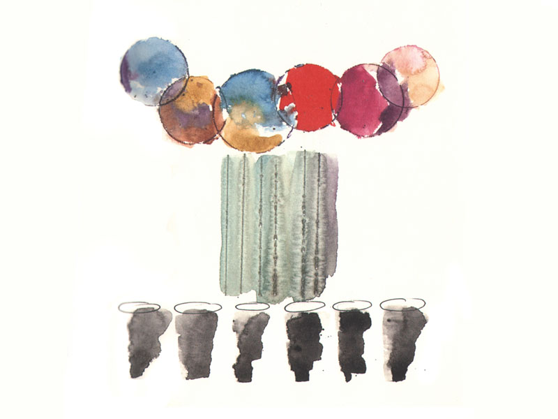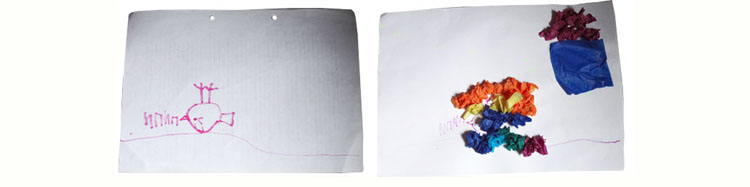 – Это сказка о квадратах. Как один квадрат куда-то отправился и встретил семью кружочков. Кружочки были мягкие и разноцветные. Вот папа, а это детки. А может, мама и детки? А потом они, наверное, отправились гулять. И увидели море – только оно почему-то коричневое. И корабль тонет. Грязное море. А это машины едут, одна хочет повернуть, но ей нельзя...