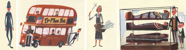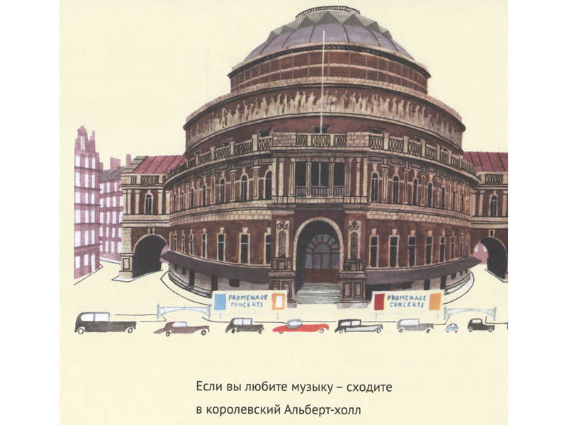 И о Лондоне Мирослав Шашек написал. Текст, как и парижский, довольно простенький – путеводитель для детей. Но картинки с двухэтажными красными автобусами, с лондонскими полицейскими-бобби, с Элизой Дулитл, продающей фиалки, и египетскими мумиями в Британском музее очаровывают. В этой книжке всё по интересам: любишь лазить по деревьям – тебе в парк, любишь музыку – в Альберт-Холл. Конечно, Лондон немало изменился с тех пор, как Шашек написал свою книгу, но лондонский дух, так верно схваченный в его иллюстрациях, никуда не пропал.